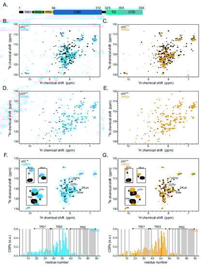 - Sun, X.; Dyson, H.J.; Wright, P.E. A phosphorylation-dependent switch in the disordered p53 transactivation domain regulates DNA binding. Proc. Natl. Acad. Sci. USA 2021, 118, e2021456118. [Google Scholar] [CrossRef]