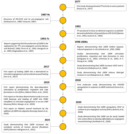 In addition to the studies to demonstrate the pro-angiogenic properties of 2dDR, in recent years, a considerable progress has been made in developing dressings to stimulate angiogenesis by loading 2dDR into a range of carriers.