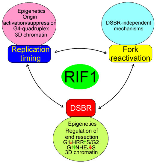 Wang et al. demonstrated that RIF1 downregulation caused defective HRR in cancer cells making them more sensitive to DSB-inducing anticancer drugs [34]. This might result from HRR-mediated DSBR in pre-replicative DNA with no possibility to inhibit end resection by RIF1.