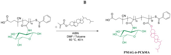 Schemes of PMAG (A) and PMAG-b-PChMA (B) synthesis.
