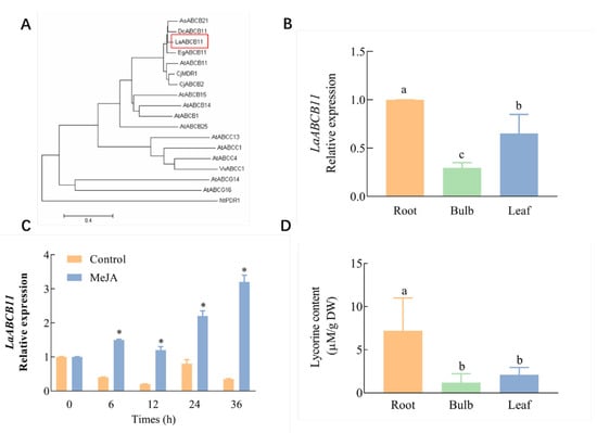An ATP-Binding Cassette Transporter, LaABCB11, Contributes to Alkaloid Transport in Lycoris aurea