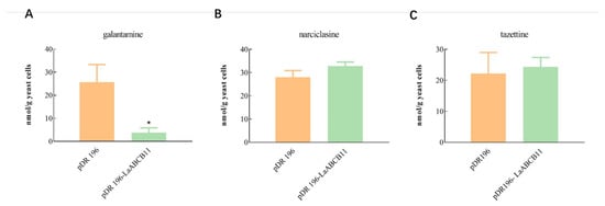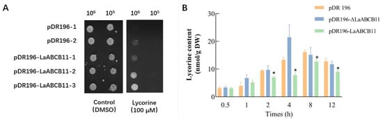 2.2. LaABCB11 Functions as a Lycorine Efflux in Yeast