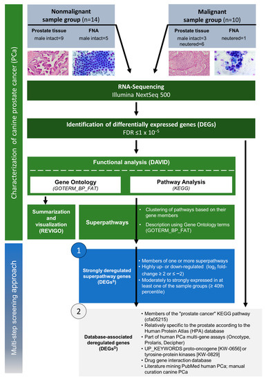 - Thiemeyer, H.; Taher, L.; Schille, J.T.; Harder, L.; Hungerbuehler, S.O.; Mischke, R.; Hewicker-Trautwein, M.; Kiełbowicz, Z.; Brenig, B.; Schütz, E.; et al. Suitability of ultrasound-guided fine-needle aspiration biopsy for transcriptome sequencing of the canine prostate. Sci. Rep. 2019, 9, 1–14. [Google Scholar] [CrossRef] [PubMed]