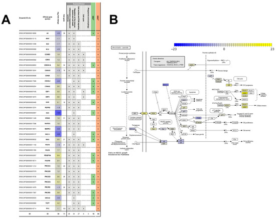 2.4. The Gene Network of 602 DEGsD Form a Tightly Interconnected Gene Network Intertwined with the “Prostate Cancer” Pathway