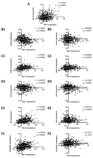 2.1. MSI-1 and -2 Expression Correlate with Each Other and with Cancer Stem Cell-Associated Genes