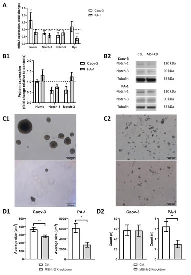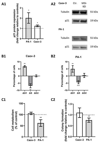 2.3. Cell Cycle Progression Is Modulated by MSI-1/-2 Knockdown