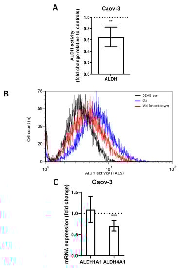 - As discussed above, ALDH4 has been linked to increased resistance to oxidative stress [33]. Given the downregulation of ALDH4 after MSI knockdown, cells may become more susceptible to radiation-induced, ROS-mediated DNA damage.