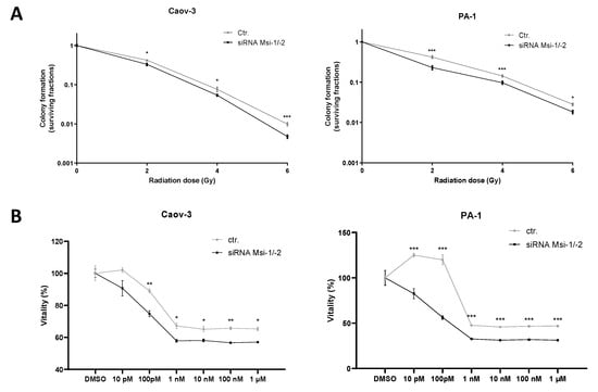 3.4. MSI-1/-2 Expression Affects Radio- and Chemoresistance In Vitro