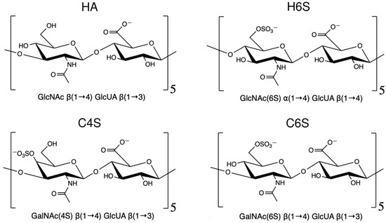 - Gandhi, N.S.; Mancera, R.L. The structure of glycosaminoglycans and their interactions with proteins. Chem. Biol. Drug Des. 2008, 72, 455–482. [Google Scholar] [CrossRef]