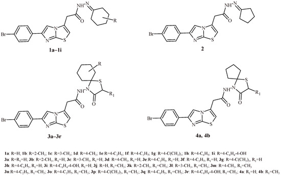 Imidazo[2,1-b]thiazole-thiazolidin-4-one hybrids (3a–3r, 4a and 4b) and their precursors (1a–1i and 2) with antioxidant activity.