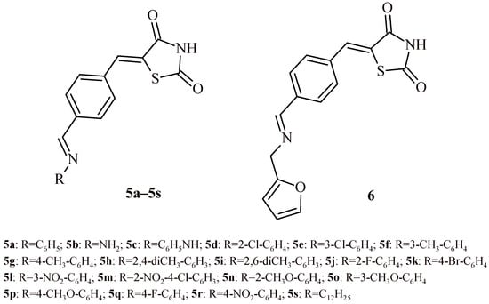 The 5-Arylidenethiazolidine-2,4-dione derivatives (5a–5s) and 6 with antioxidant and antimicrobial activity.