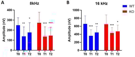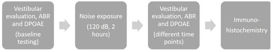 - Akil, O.; Oursler, A.E.; Fan, K.; Lustig, L.R. Mouse Auditory Brainstem Response Testing. Bio-Protocol 2016, 6, e1768. [Google Scholar] [CrossRef] [PubMed]