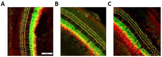 2.4. Hair Cells and Neurons Remained Intact after Noise Trauma