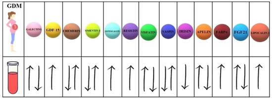 Bellos et al. conducted a review of 29 studies evaluating resistin levels in GDM [68]. Nine of these studies found a significant increase in resistin in women with GDM, while a decrease was seen in four of them. The remaining 16 studies showed no association.