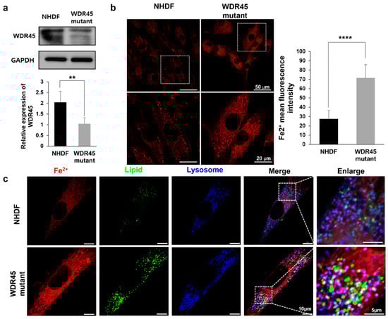 WDR45 mutant fibroblasts was significant compared with that in NHDF (