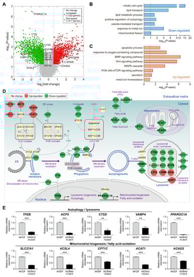 12]. The alterations of these cytosolic constituents change the activities of diverse signaling pathways and the expression levels of their target genes, thereby affecting cellular processes, such as autophagic flux, lipid metabolism, mitochondrial biogenesis, and apoptosis. Thus, understanding the alteration of gene expression programs caused by