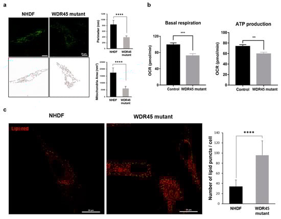 WDR45 mutant fibroblasts. Our results showed mitochondrial dysfunction and fragmentation (