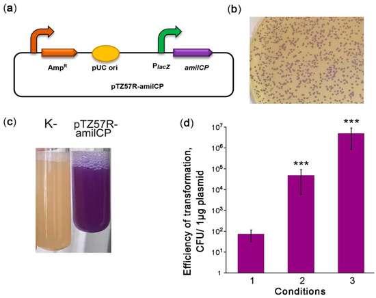 - Gonzales, M.F.; Brooks, T.; Pukatzki, S.U.; Provenzano, D. Rapid protocol for preparation of electrocompetent Escherichia coli and Vibrio cholerae. J. Vis. Exp. 2013, e50684. [Google Scholar] [CrossRef]