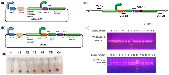 - Butterton, J.R.; Beattie, D.T.; Gardel, C.L.; Carroll, P.A.; Hyman, T.; Killeen, K.P.; Mekalanos, J.J.; Calderwood, S.B. Heterologous antigen expression in Vibrio cholerae vector strains. Infect. Immun. 1995, 63, 2689–2696. [Google Scholar] [CrossRef] [PubMed]