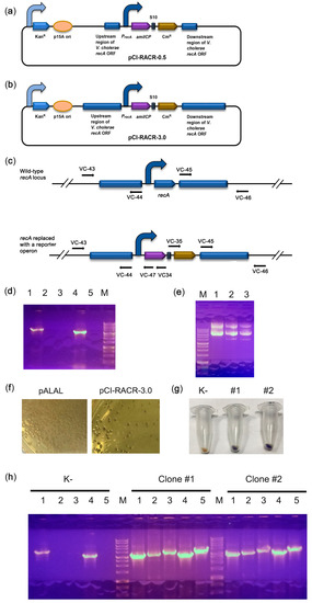 - Marvig, R.L.; Blokesch, M. Natural transformation of Vibrio cholerae as a tool—Optimizing the procedure. BMC Microbiol. 2010, 10, 155. [Google Scholar] [CrossRef]