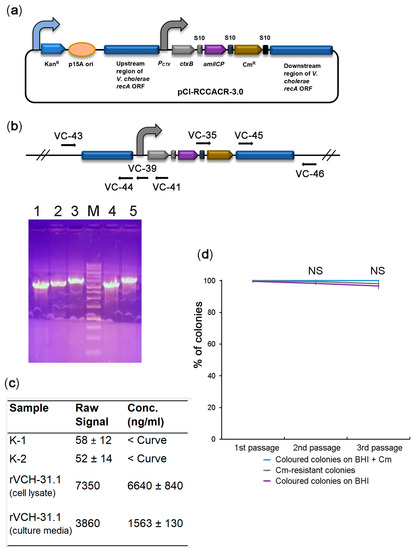- Rhie, G.E.; Jung, H.M.; Park, J.; Kim, B.S.; Mekalanos, J.J. Construction of cholera toxin B subunit-producing Vibrio cholerae strains using the Mariner-FRT transposon delivery system. FEMS Immunol. Med. Microbiol. 2008, 52, 23–28. [Google Scholar] [CrossRef] [PubMed]
