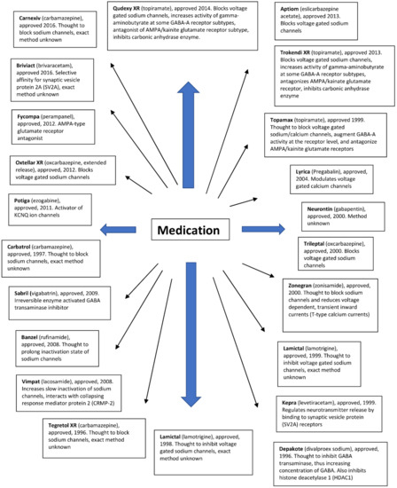 Over the past two decades, a group of 23 drugs for the treatment of epileptic seizures has been approved by the U.S. Food and Drug Administration (FDA) [131,132,133,134,135,136,137,138,139,140].
