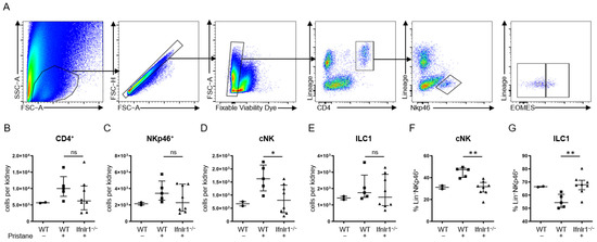 2.4. After Pristane Treatment, Ifnlr1−/− Mice Show Reduced Numbers of Conventional NK Cells in the Kidney Compared to Wild-Type Mice