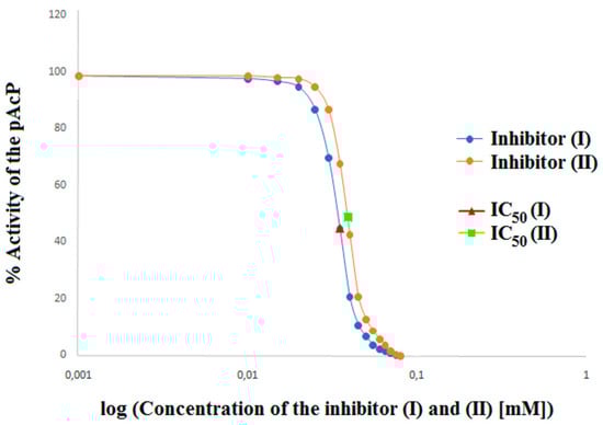 The inhibitory effects of compounds (I) and (II) on PAP are shown in the form of electrophoregrams in Figure 2, with the detailed data presented in Tables S1 and S2 in the Supplementary Materials section.