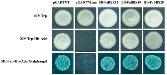 4.11. Transactivation Activity Analysis of FaBBXs Protein in Yeast