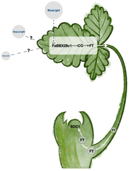 - Kurokura, T.; Samad, S.; Koskela, E.; Mouhu, K.; Hytönen, T. Fragaria vesca CONSTANS controls photoperiodic flowering and vegetative development. J. Exp. Bot. 2017, 68, 4839–4850. [Google Scholar] [CrossRef] [Green Version]