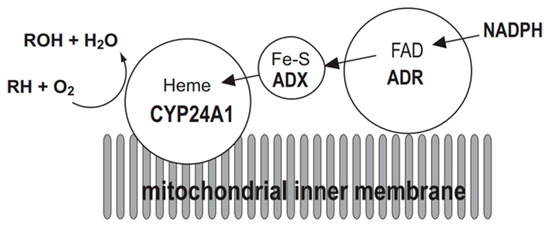 - Sakaki, T.; Sawada, N.; Nonaka, Y.; Ohyama, Y.; Inouye, K. Metabolic studies using recombinant Escherichia coli cells producing rat mitochondrial CYP24: CYP24 can convert 1α,25-dihydroxyvitamin D3 to calcitroic acid. JBIC J. Biol. Inorg. Chem. 1999, 262, 43–48. [Google Scholar] [CrossRef]