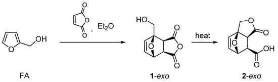 - Pelter, A.; Singaram, B. The reactions of furfuryl alcohols with maleic anhydride. J. Chem. Soc. Perkin Trans. 1983, 1, 1383–1386. [Google Scholar] [CrossRef]