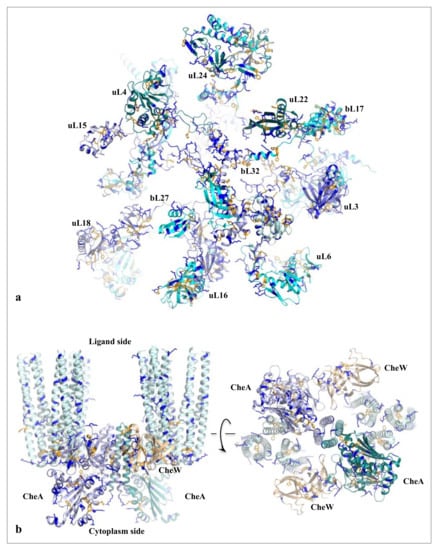- Timsit, Y.; Allemand, F.; Chiaruttini, C.; Springer, M. Coexistence of Two Protein Folding States in the Crystal Structure of Ribosomal Protein L20. EMBO Rep. 2006, 7, 1013–1018. [Google Scholar] [CrossRef] [PubMed]