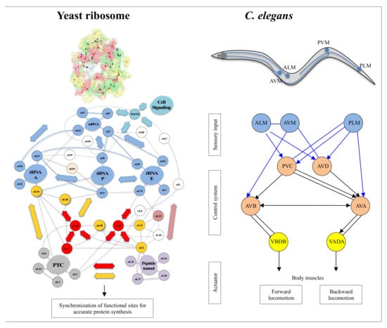 - Poirot, O.; Timsit, Y. Neuron-Like Networks Between Ribosomal Proteins Within the Ribosome. Sci. Rep. 2016, 6, 26485. [Google Scholar] [CrossRef] [PubMed]