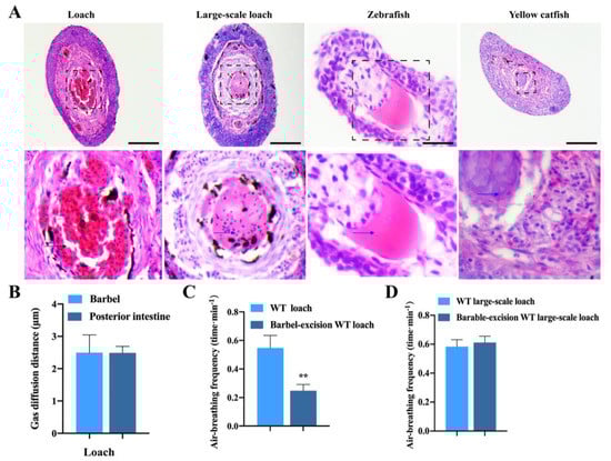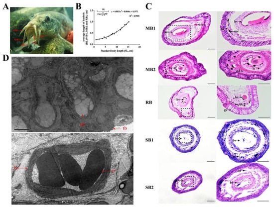2.1. Histological Structures of Loach Barbels Suitable for Air-Breathing