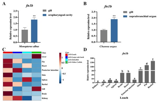 Sun, B.; Huang, S.; Huang, L.; Yang, L.; Gao, J.; Cao, X. Fibronectin 1B Gene Plays an Important Role in Loach Barbel Air-Breathing. Int. J. Mol. Sci. 2021, 22, 11928. https://doi.org/10.3390/ijms222111928