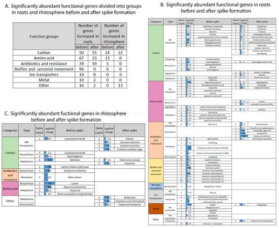 2.3. The Effect of Niche and Spike Formation on Specific Root-Associated and Rhizosphere Gene Functions