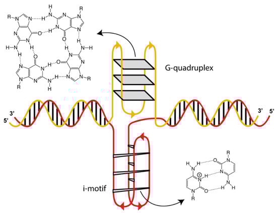 - Abou Assi, H.; Garavís, M.; González, C.; Damha, M.J. I-Motif DNA: Structural Features and Significance to Cell Biology. Nucleic Acids Res. 2018, 46, 8038–8056. [Google Scholar] [CrossRef] [Green Version]