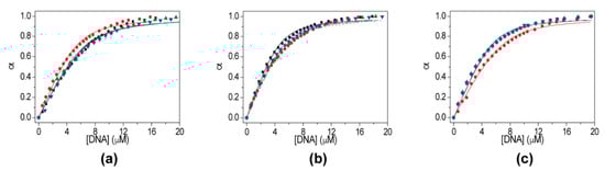 Binding constant (Kb) values were obtained by fitting the fluorescence titration curves to an independent and equivalent binding sites model [].
