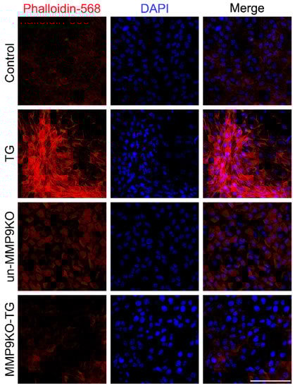 2.1. Absence of MMP9 Leads to Defects in TGF-β-Induced Actin Polymerization and Differential Expression of αSMA