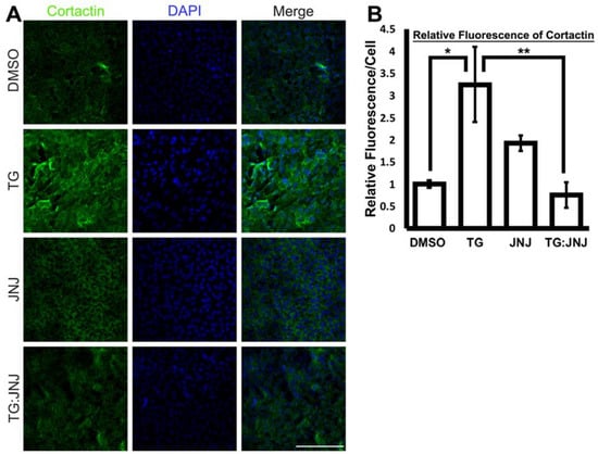 - Weed, S.A.; Karginov, A.V.; Schafer, D.A.; Weaver, A.M.; Kinley, A.W.; Cooper, J.A.; Parsons, J.T. Cortactin Localization to Sites of Actin Assembly in Lamellipodia Requires Interactions with F-Actin and the Arp2/3 Complex. J. Cell Biol. 2000, 151, 29–40. [Google Scholar] [CrossRef] [PubMed]
