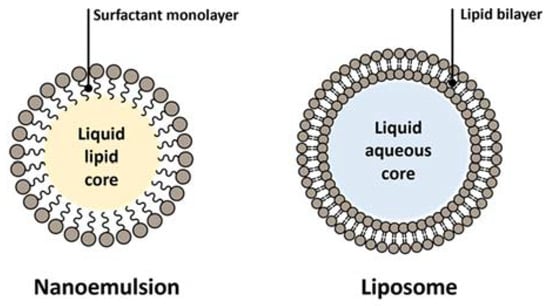 Nanosized [bio]materials and formulations are regarded as the gold standard of non-physical methods for drug delivery, with emphasis on dermal and transdermal applications. Lipid-based or -inspired nanosystems are by far the most common, covering from the classical examples of nanoemulsions and liposomes (Figure 4) to solid lipid nanoparticles and nanostructured lipid carriers.