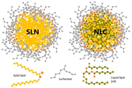 General structures of SLNs and NLCs [72]. Reprinted with permission from ref. [72]. Copyright 2020 Scioli Montoto, Muraca and Ruiz.