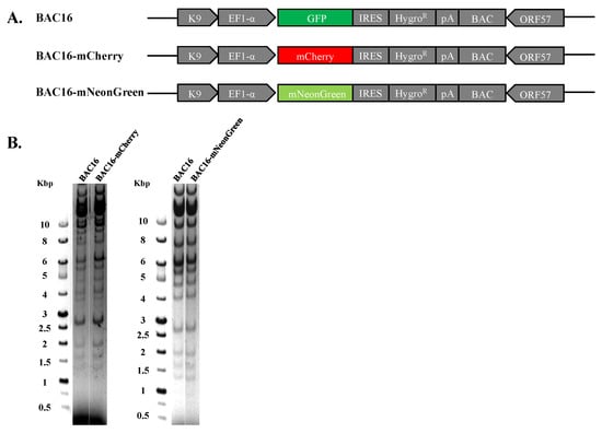 2.1. Construction of BAC16-mCherry and BAC16-mNeonGreen Recombinant Viruses