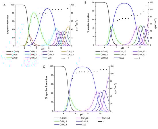 - Alderighi, L.; Gans, P.; Ienco, A.; Peters, D.; Sabatini, A.; Vacca, A. Hyperquad simulation and speciation (HySS): A utility program for the investigation of equilibria involving soluble and partially soluble species. Coord. Chem. Rev. 1999, 184, 311–318. [Google Scholar] [CrossRef]