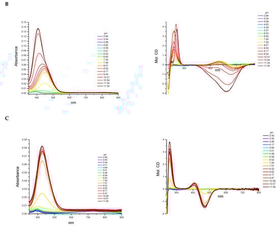 3.3. Spectroscopic Measurements (UV-Vis and CD)