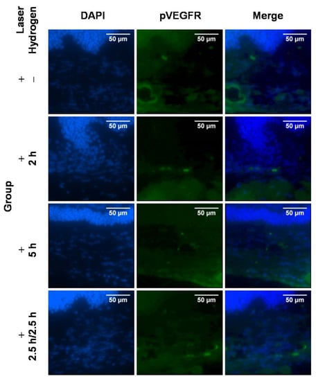 Immunofluorescence staining and the expression of pVEGFR on Day 15 (10 days after laser photocoagulation).