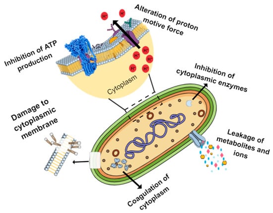The main mechanisms of action of natural antimicrobials are shown in Figure 2.