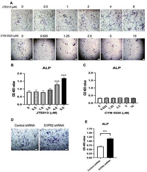 2.2. Treatment with JTE013 or a S1PR2 ShRNA Increased ALP Staining in Murine BMSCs