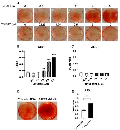 2.3. Treatment with JTE013 or a S1PR2 ShRNA Increased Alizarin Red S (ARS) Staining in Murine BMSCs